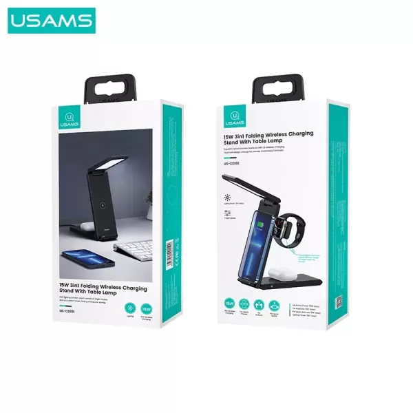 - Mobile phone/earphone/watch three-in-one wireless charger Can be used as a mobile phone stand, the mobile phone can be horizontal or vertical Comes with desk lamp lighting, three levels of brightness adjustable Foldable design, portable and easy to store